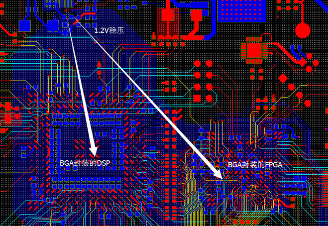 3、多電源系統(tǒng)的布線:如FPGA+DSP系統(tǒng)做6層板,一般至少會(huì)有3.3V+1.2V+1.8V+5V。