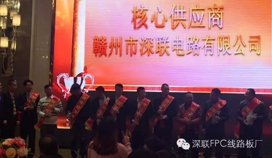 3月25日,天氣晴好,深圳沙井福永,內(nèi)液晶顯示模組領(lǐng)軍企業(yè)帝晶光電召開年度供應(yīng)商大會(huì),贛州市深聯(lián)電路作為帝晶光電的主打FPC供應(yīng)商,一舉斬獲“2015年度核心供應(yīng)商”大獎(jiǎng)。
