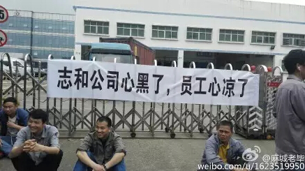 志和家電裁員撤走中山工廠引糾紛 員工拉橫幅抗議