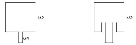 有許多方法可以達到饋線與阻抗匹配。補片可與一個四分之一波長的高阻抗線匹配,或一條50奧姆線可延伸到補片的內(nèi)部,如下圖所示。阻抗在中心點是小的,且阻抗值是跟著軸長的增加而增加,所以尺寸的選擇是以能得到支持50奧姆的點來決定的。