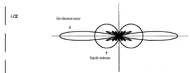 輻射器的數(shù)組利用其個別元素,可以產(chǎn)生大量的增益。數(shù)組的增益是數(shù)組因素與元素增益的乘積。很多數(shù)組是在一個假設(shè)下設(shè)計的,此假設(shè)是:饋給系統(tǒng)導(dǎo)致每一個元素都有一個規(guī)定的電流與相位。這通常忽略了鄰近雙極元素之間的相互阻抗之影響。前面已談過可用四分之一波長的電線來饋給每一個元素,以致它們的電流都相等。然而,使用一般的饋給法,想要得到極大的相位差是很困難的。