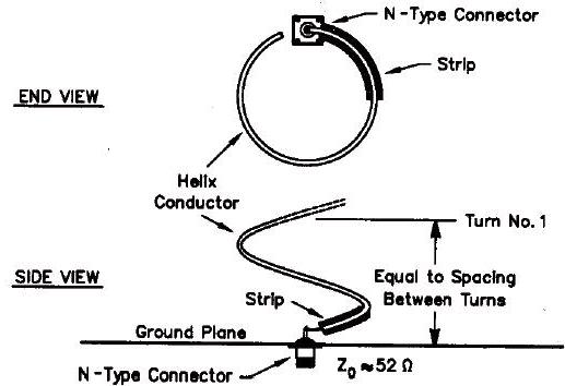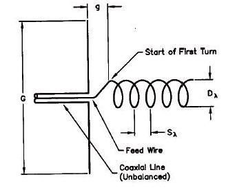 螺旋天線很簡單但非常有效,它以簡易的輻射體結(jié)構(gòu)來提供增益。下圖是其尺寸的實例: