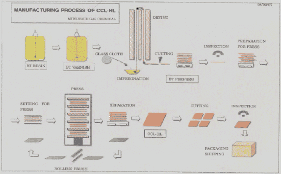 電子產(chǎn)品在多功能化、高I/O數(shù)及小型化趨勢下,IC構(gòu)裝技術(shù)隨之改變,因此由1980年代以前的通孔插裝(PTH Insertion),1980~1993年大幅變革成表面黏裝smt方式,進(jìn)展到至今以BGA、CSP及Flip Chip為主的構(gòu)裝方式,由IC載板生產(chǎn)成本來看,材料價占比重高達(dá)40%~50%,原料中又以BT樹脂(Bismaleimide Triazine Resin)為主,BT樹脂是日本三菱瓦斯化學(xué)公司于1982年經(jīng)拜耳化學(xué)公司技術(shù)指導(dǎo)所開發(fā)出來,擁有專利也商業(yè)化量產(chǎn),因此是目前全球大的BT樹脂制造商。