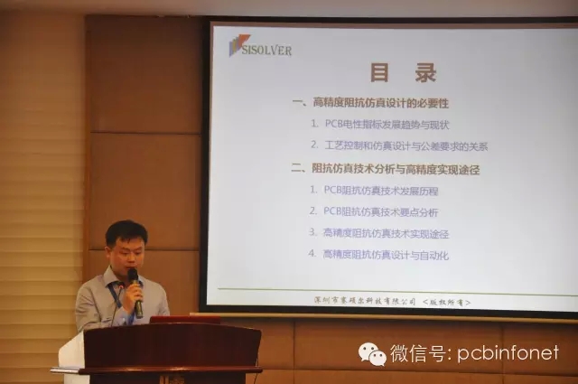 5號會場共有5場演講,會場由劉彬云主持,演講者和演講主題分別為博敏電子張豪的《PCB工程設計放錯探索》、重慶方正密高電子周明鏑的《內層+?/-8/阻抗宏志研究》、深圳賽碩爾科技何洪的《高精度阻抗仿真計算與設計過程自動化的實現(xiàn)》、廣州興森快捷電路程柳軍的《玻纖效應對高速信號的影響》、深圳景旺電子侯利娟的《微帶線結構阻抗研究》。請看5號會場演講者們的精彩瞬間。