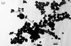 (2) 用抗壞血酸還原制備的納米銀粒子大小不均一,粒徑分布較寬,平均粒徑在50 nm左右,其融化點在170℃。