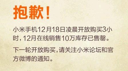 10萬臺1.5G雙核小米手機在三小時內(nèi)被粉絲全部“掃光”,平均每分鐘銷售出500多臺手機